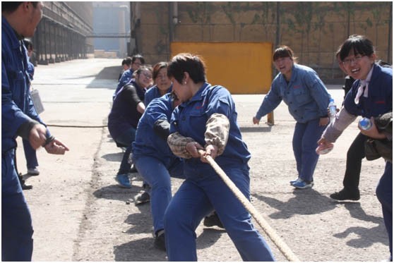 圖為質(zhì)管部女子拔河比賽的精彩畫面。據(jù)此次比賽組織者介紹,女子拔河是質(zhì)管部的優(yōu)勢項目,曾在2012年拿下全公司第一名的好成績。自2013年開始,由于公司取消了女子拔河項目,為使這個“傳統(tǒng)優(yōu)勢”繼續(xù)發(fā)揚下去,此后,女子拔河便成了質(zhì)管內(nèi)部的“保留節(jié)目”。